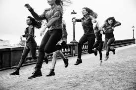”Petra hasade sig närmare tv:n. Hon såg tjejerna som var klädda i svarta, bruna och grå jackor och jeans. De sprang tillsammans i en stor klunga, galopperade och slängde med håret hit och dit. Så saktade de ner farten och stannade vid en staty mitt i en park. Några skrapade med ena foten i marken, några frustade. Statyn var en man som satt på en häst. ”Genom konstverket vill kvinnorna ta plats i det offentliga rummet” hörde Petra en röst på tv som sa.