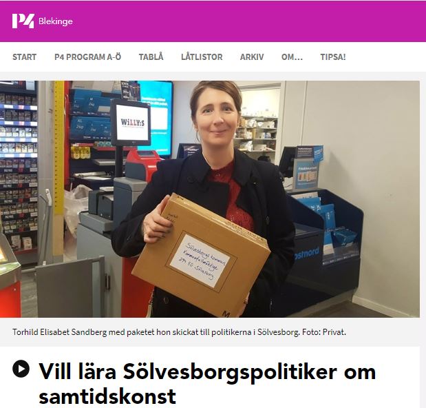 Releasen var också en bildningsaktion riktad till politiker i Sölvesborg. Samstyret i kommunen klubbade i september igenom ett nytt handlingsprogram för politiken som innebar detaljerad styrning på kulturområdet. I programmet står det att vid inköp av konst till kommunen ska klassisk konst gå före ”utmanande samtidskonst”. Bildningsaktionen innebar att jag packade ett paket med böcker, lärarhandledning och ett diagnostiskt test.