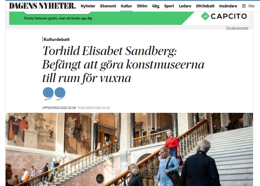 Jag har svarat på ett debattinlägg i Dagens Nyheters kulturdel. Författaren Agnes Lidbeck skrev om hur hon upplevde att barn stör hennes möte med konsten på konstmuseer. Jag blev arg över det som jag läste och replikerade snabbt. Och kom med i tidningen!